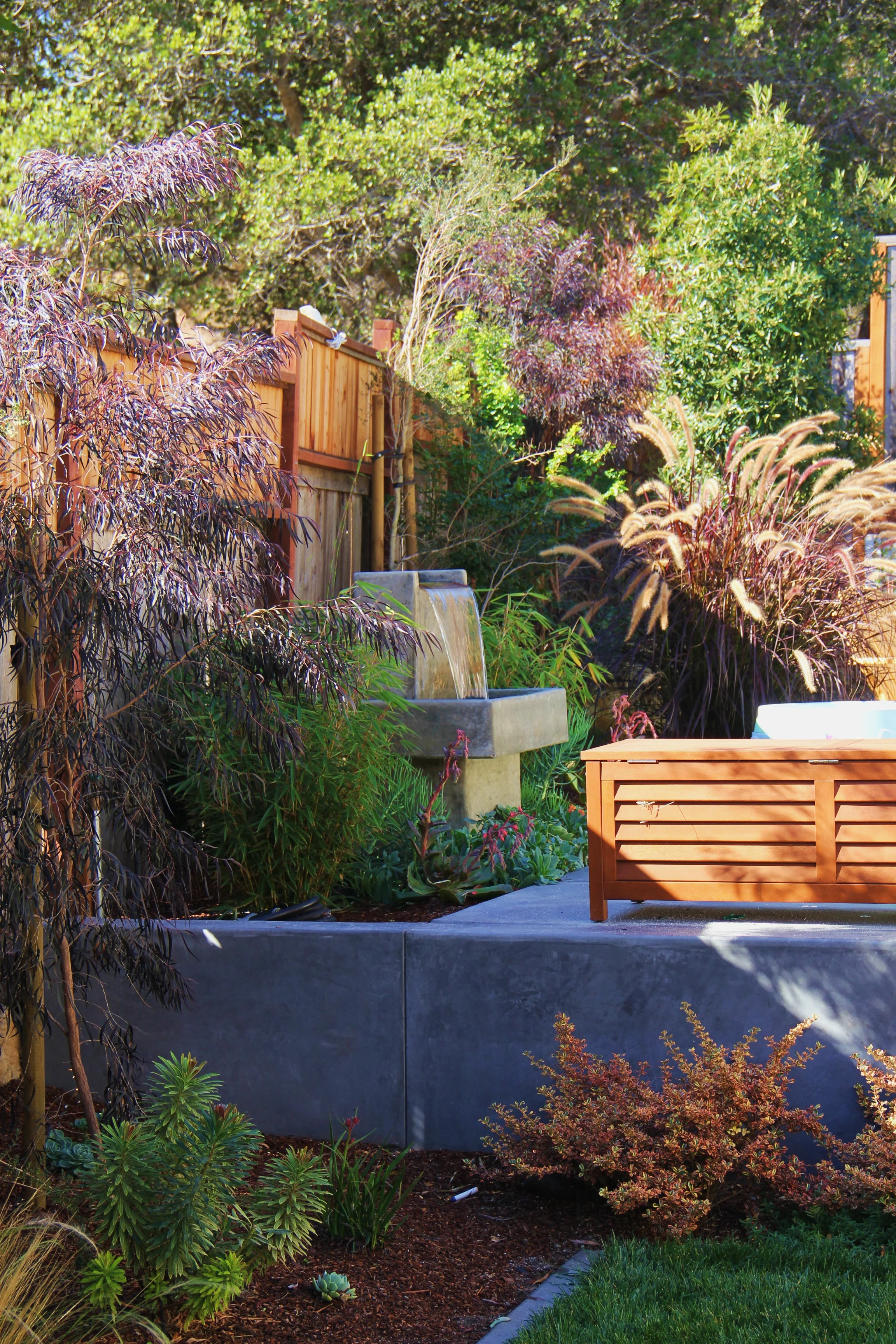 A water themed garden among the redwoods