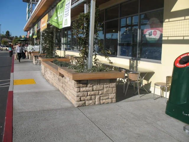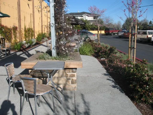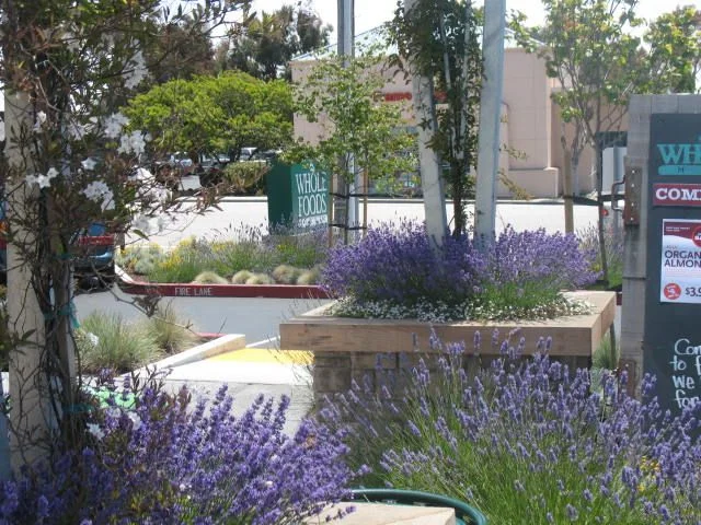 The design for the landscape areas at the Whole Foods Market in Capitola focused on planting that would complement the vibrancy and strong architecture of the renovated storefront. In keeping with Whole Food's environmentally conscious values, green building materials such as pervious concrete and reclaimed wood for the outdoor planters were used in the landscape. A drought tolerant plant palette was used throughout the project. Within this palette, plants were selected for color, texture and hardiness to the urban environment. Special attention was paid to "greening" the outdoor eating areas to provide natural, living elements to create synergy with the built elements.
