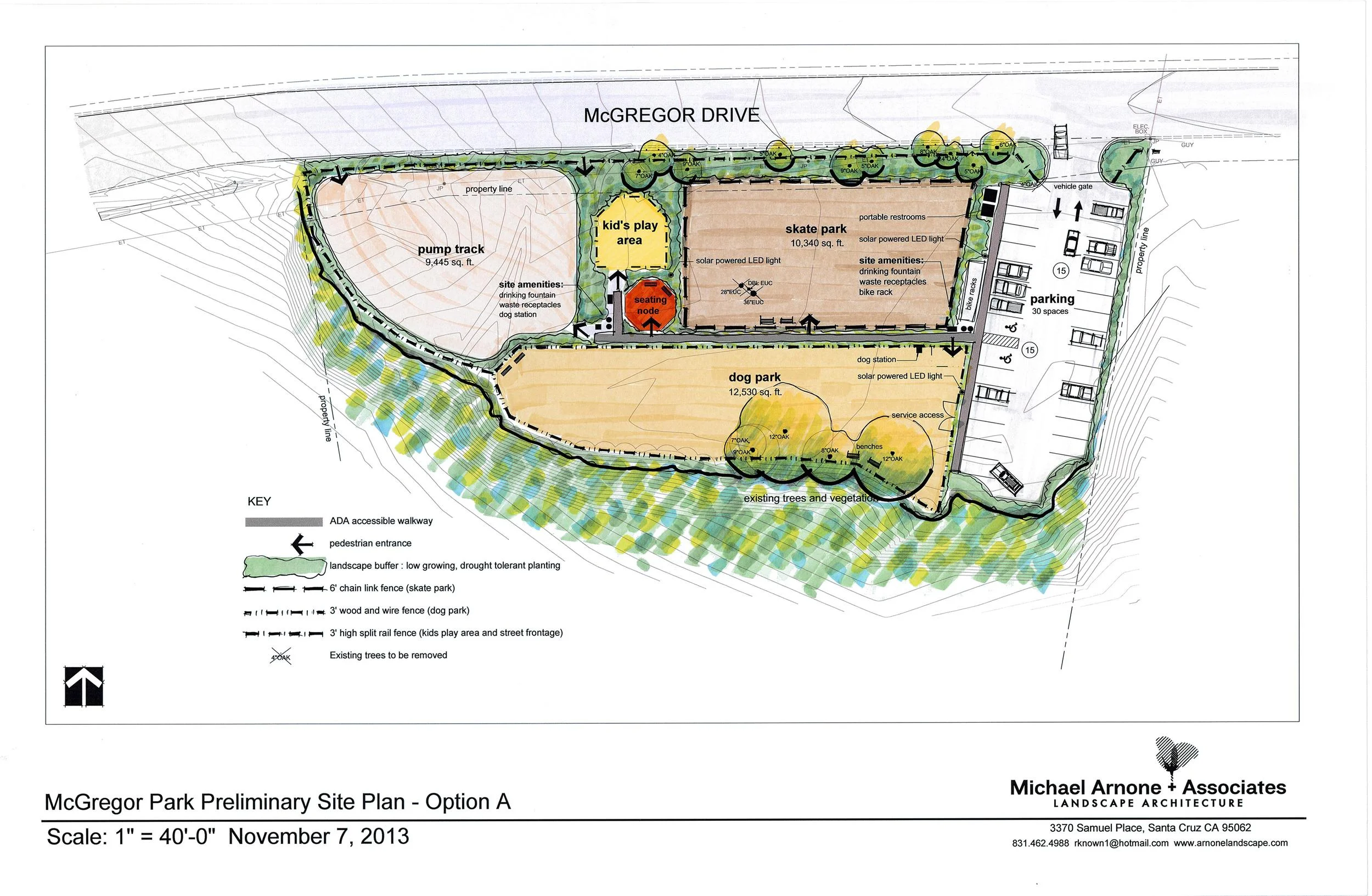MA+A worked with the Capitola city staff, public works department and community interest groups to develop the master plan for a multi use facility for McGregor Park. The previously unused site, bordering on New Brighton State Park, now serves as a pump track, dog park and skateboard park. The recent completion and dedication of the park provides a safe and exciting destination for locals with a variety of interests. Our thanks to all who contributed to the successful completion of this park: The City of Capitola, Family Cycling Center, Ozzie's Dog Park and the Monte Foundation Skate Park.